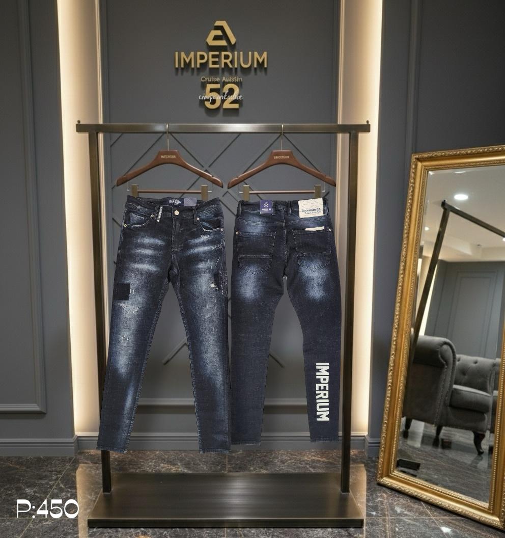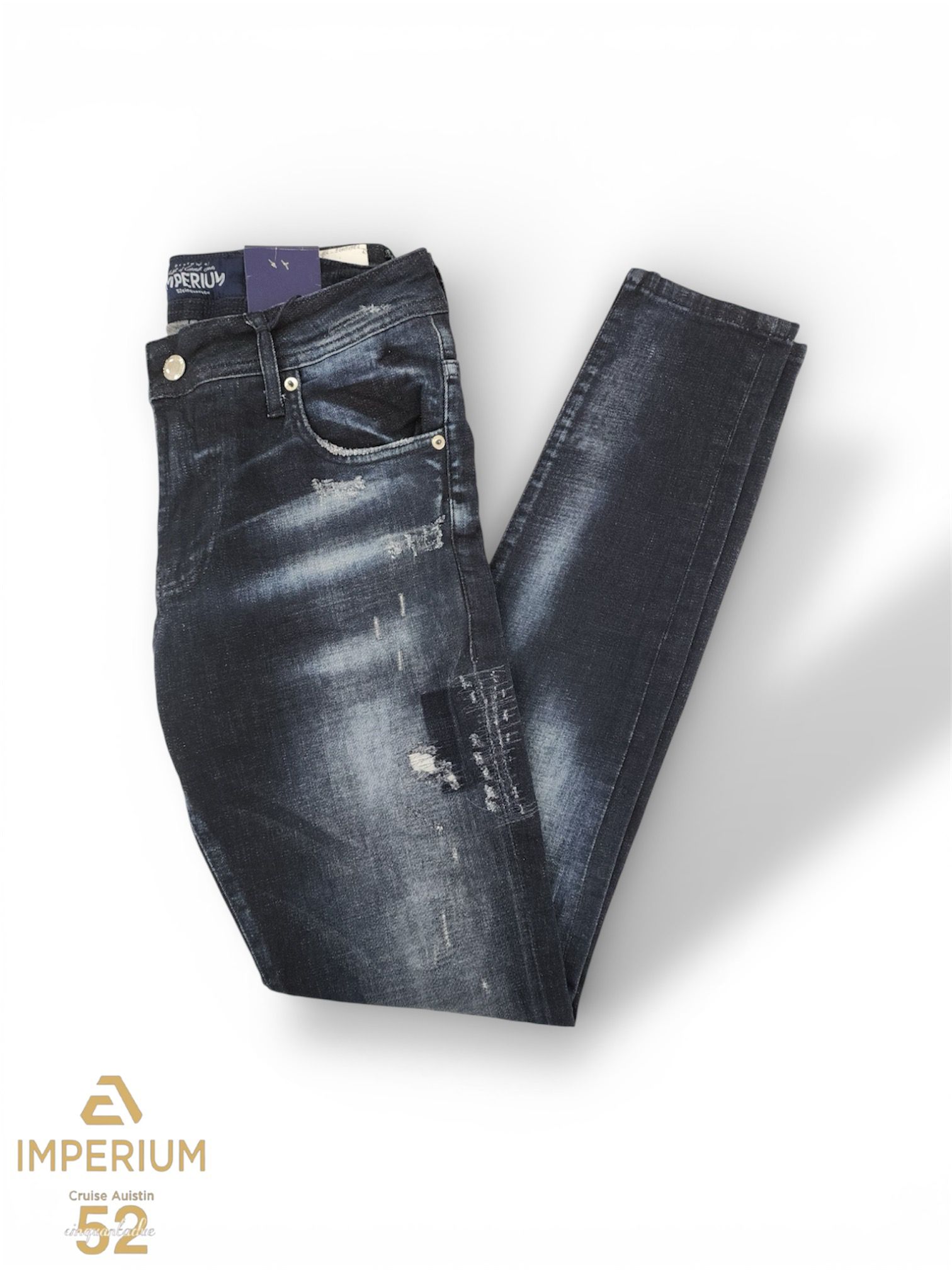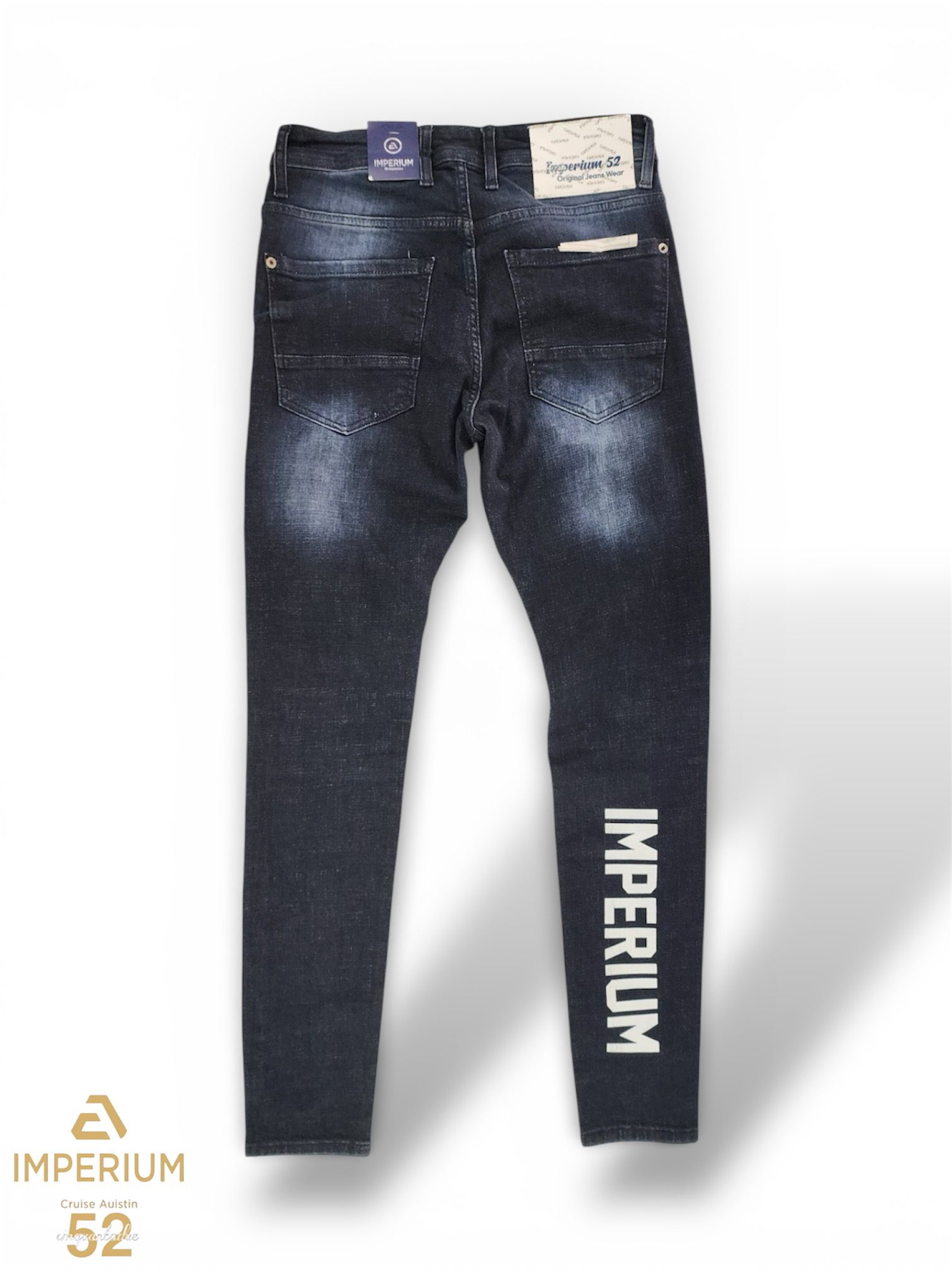 ג'ינס ג'ינס כחול כהה לגברים בגזרה צמודה – דגם Imperium Cinquantadue עם הדפס IMPERIUM בגב