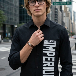 חולצה מכופתרת גברים מבית Imperium – שחור עם הדפס