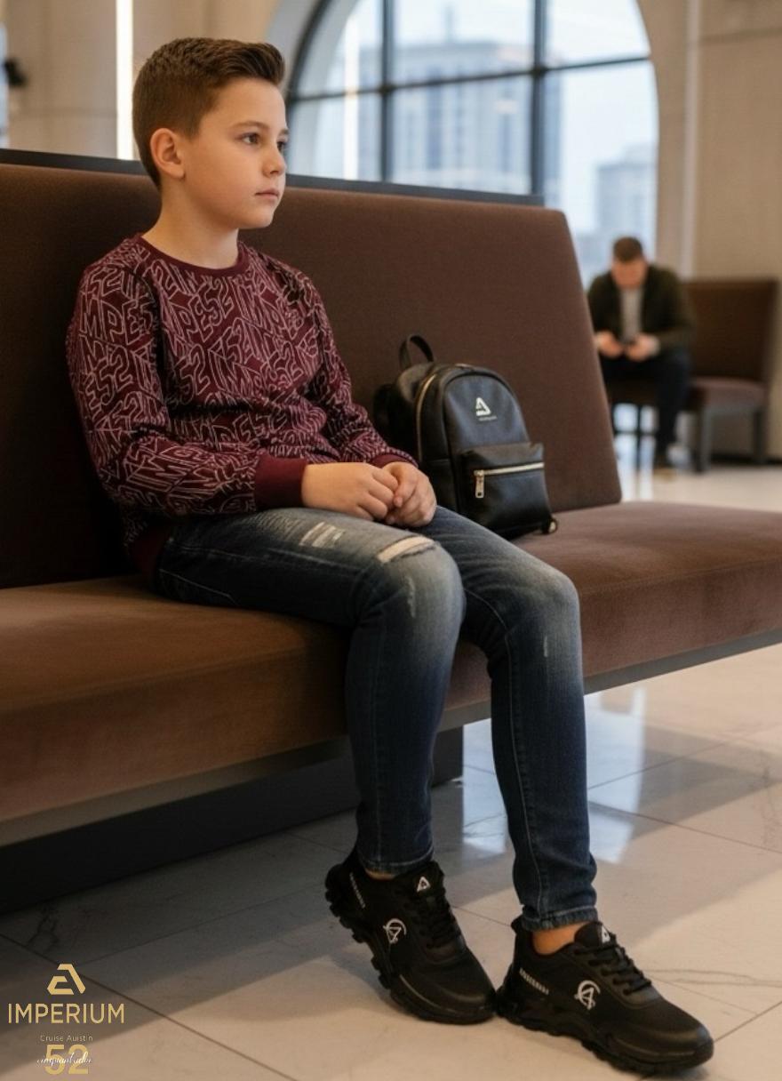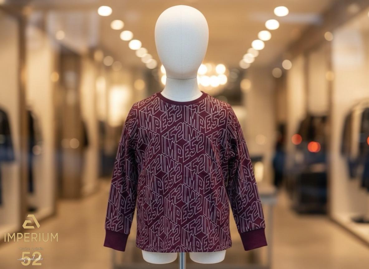 חולצת בנים אביבית יוקרתית בצבע בורדו עם הדפס לוגו גיאומטרי – Imperium 52