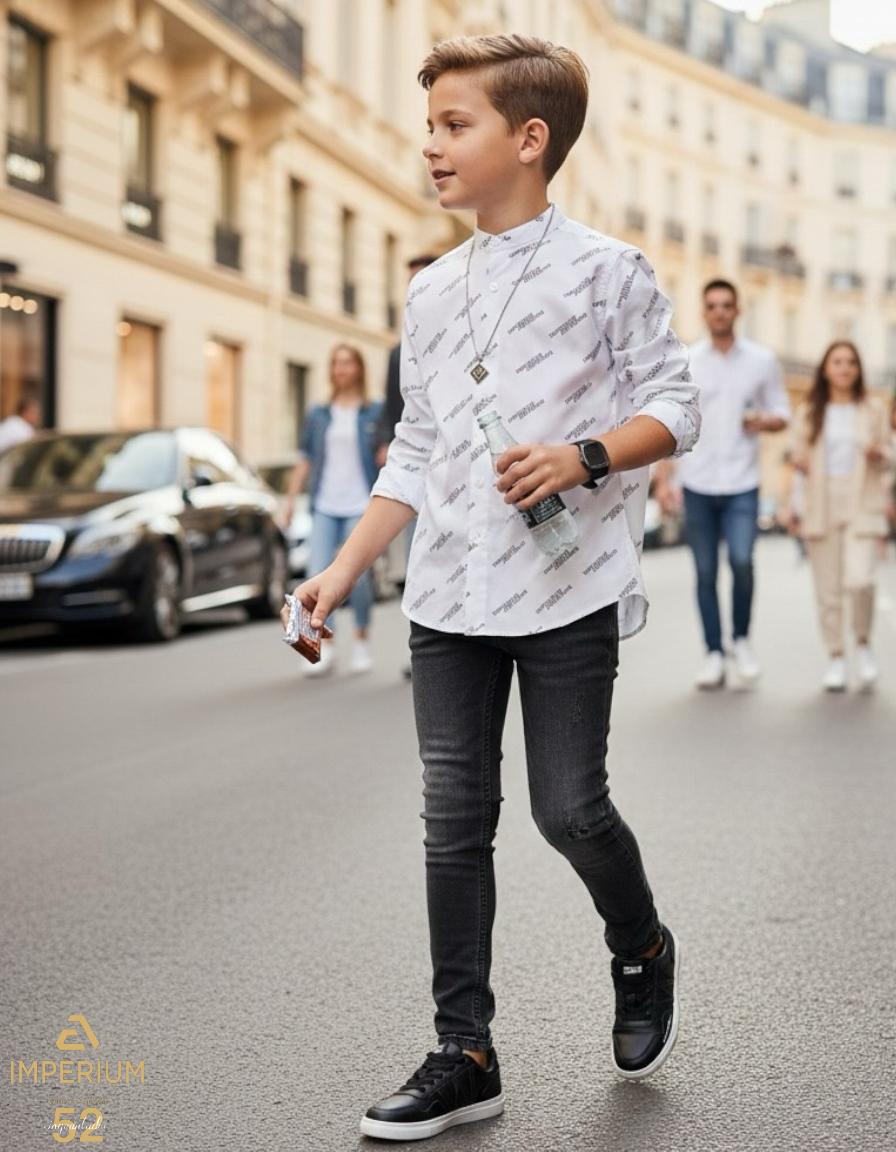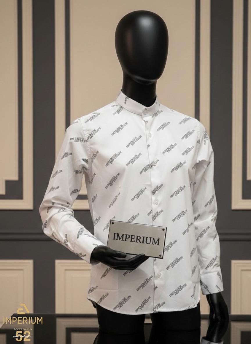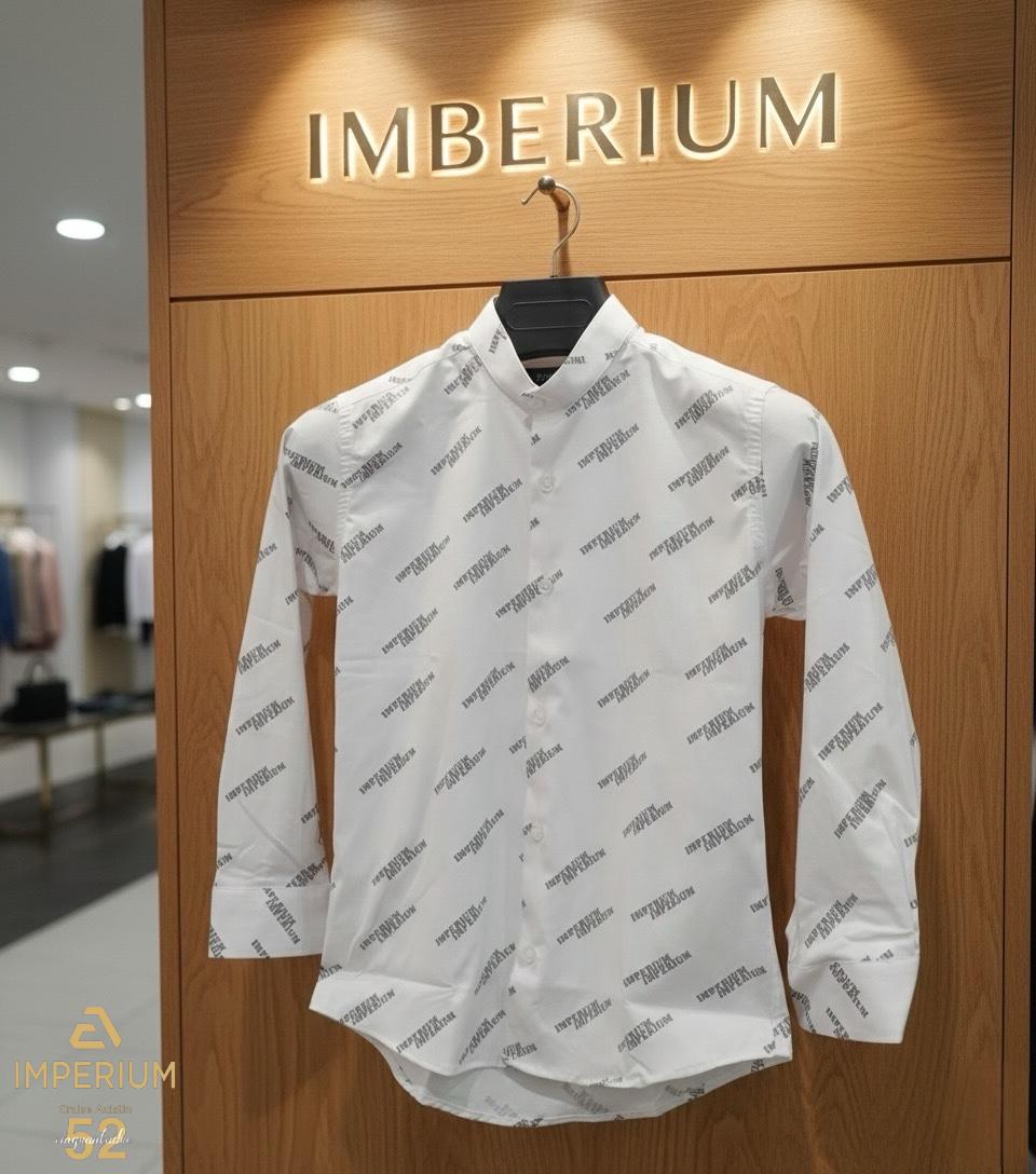 חולצת בנים לבנה חגיגית עם הדפס לוגו Imperium חוזר – צווארון סיני (מאו)