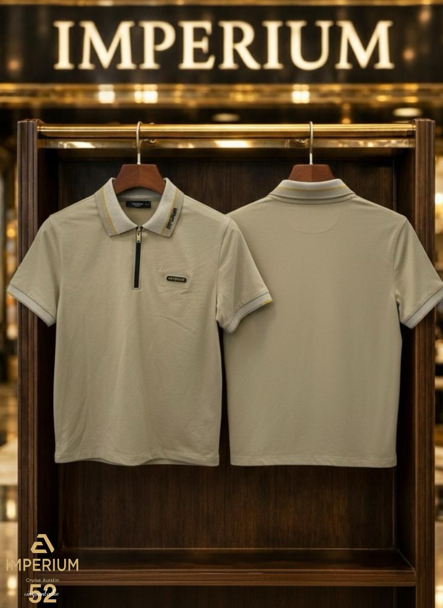עיצוב קדמי יוקרתי: רוכסן מוזהב איכותי, תג סיליקון שחור עם כיתוב IMPERIUM בצהוב, צווארון וסיומות שרוול סרוגים בגוון אפור-בהיר עם פס צהוב עדין וכיתוב IMPERIUM.