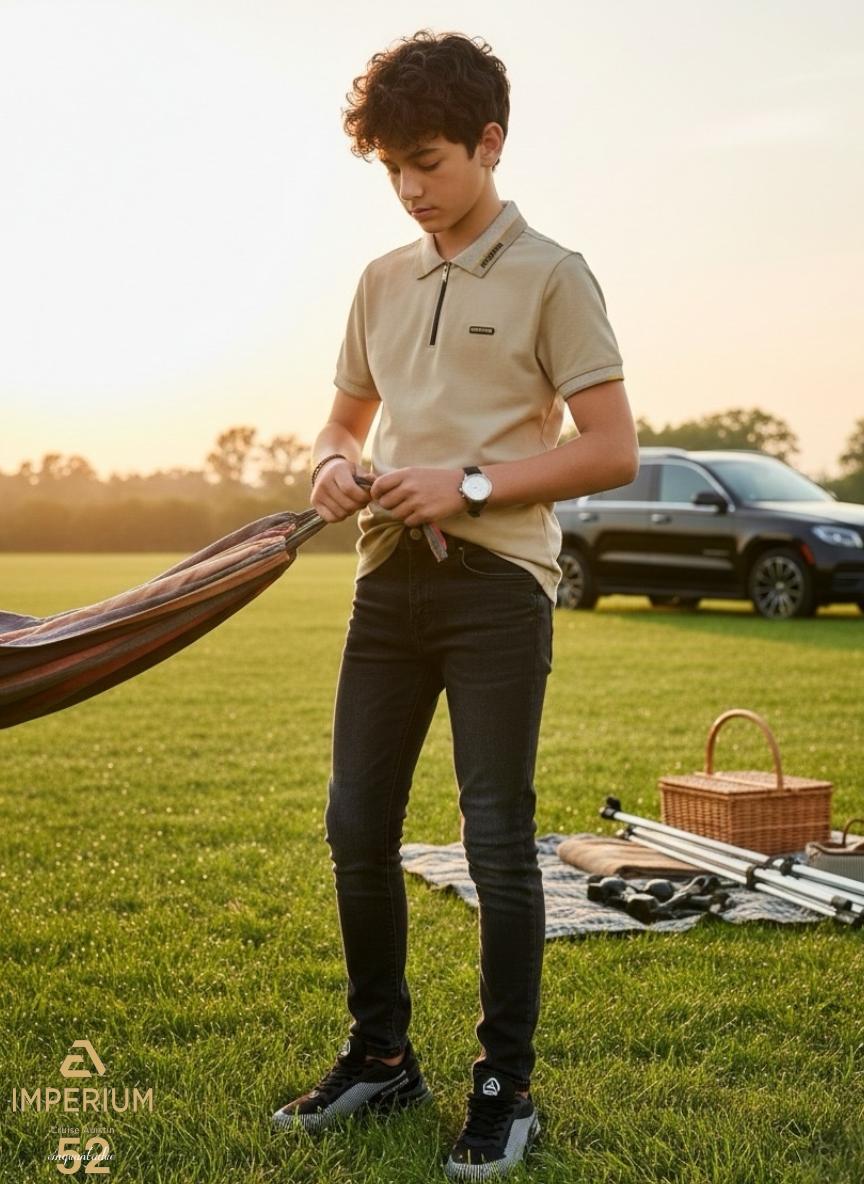 פרטי מוצר: מותג IMPERIUM, קולקציית קיץ, צבע בז' בשילוב צהוב ואפור, מיועד לילדים.