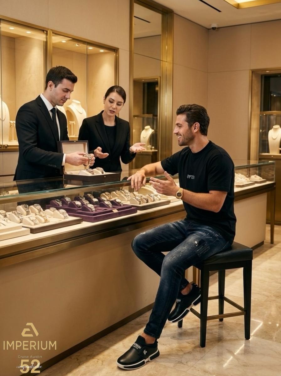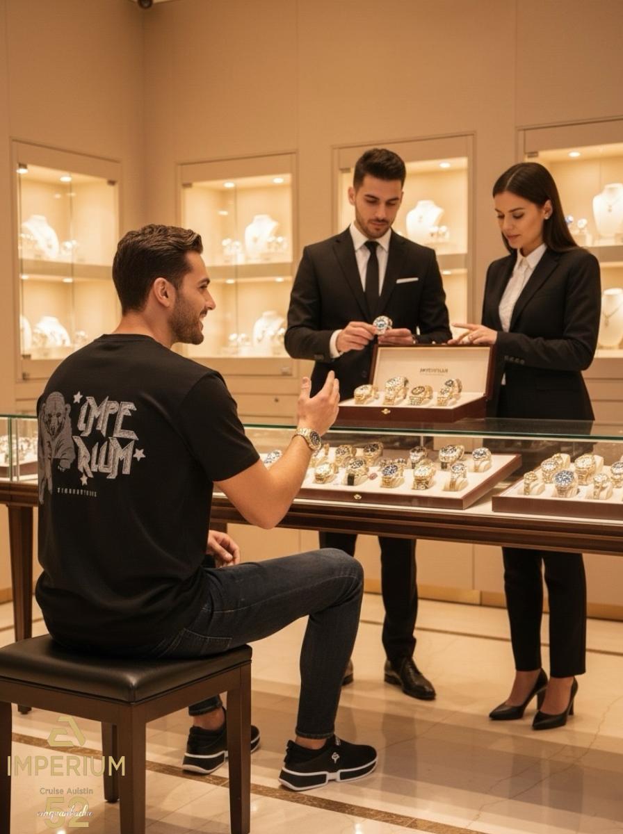 • פרטים קדמיים: עיצוב פשוט ואלגנטי הכולל את המילה "Imperium" מודפסת בגופן קטן ומודרני על פני מרכז החזה.