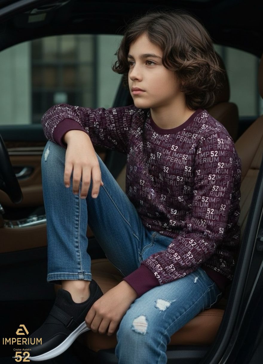• הדפס לוגו חוזר (All-Over Print): החולצה מעוטרת בהדפס צפוף של השם "IMPERIUM" שמופיע לאורך כל הבד, מלפנים ומאחור, ובצורה רציפה גם על השרוולים.