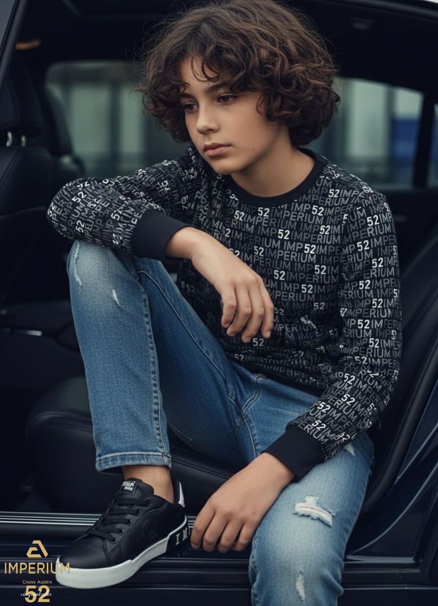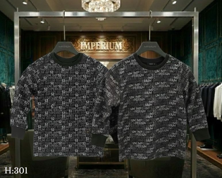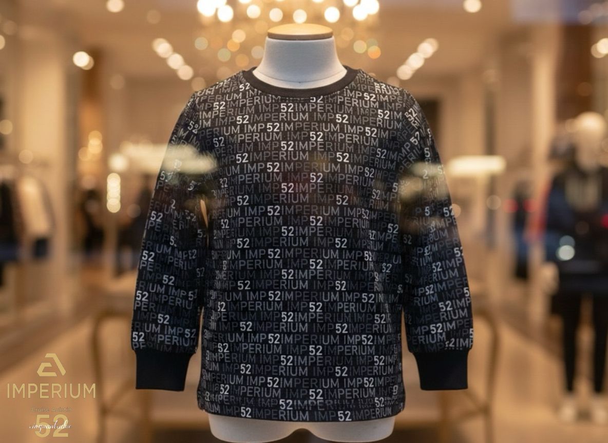 • עיצוב גיאומטרי ייחודי (All-Over Print): החולצה מכוסה כולה בהדפס חוזר וצפוף של המותג "IMP 52". העיצוב מופיע באופן רציף גם בחלק הקדמי וגם בחלק האחורי (הגב), ליצירת מראה מודרני ותלת-ממדי.