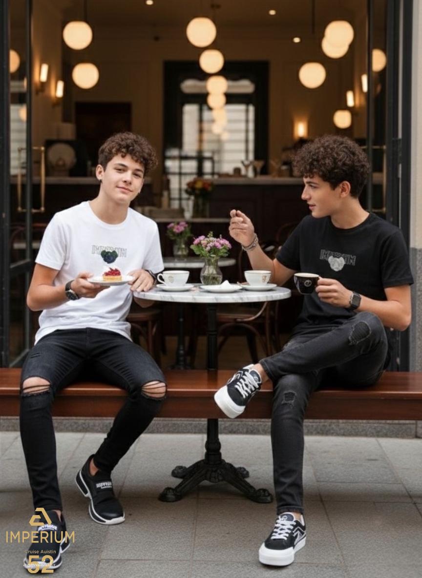 • צד אחורי: הדפס גרפי מרשים וגדול הכולל את הכיתוב "IMPERIUM" בשכבות, ומעליו הדפס מלא של הדובי הגיאומטרי. בתחתית מופיע הכיתוב "CINQUANTADUE – Italy Style".