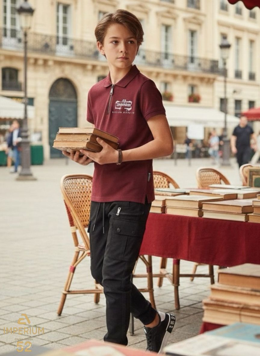 חולצת טי-שרט רוכסן לילדים – Imperium Milano בורדו (קולקציית קיץ)