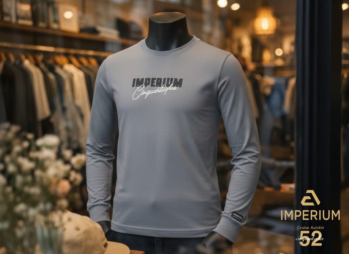 חולצת טריקו אביבית לבנים של Imperium 52 – דגם עם לוגואים מרובים (אפור)