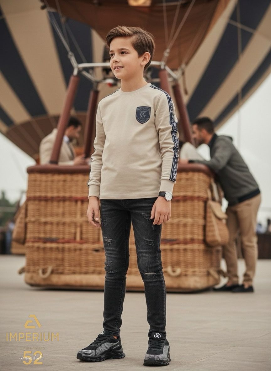 • סוג מוצר: חולצת טריקו ארוכת שרוולים אביבית לבנים עם עיצוב ספורטיבי וקז'ואל