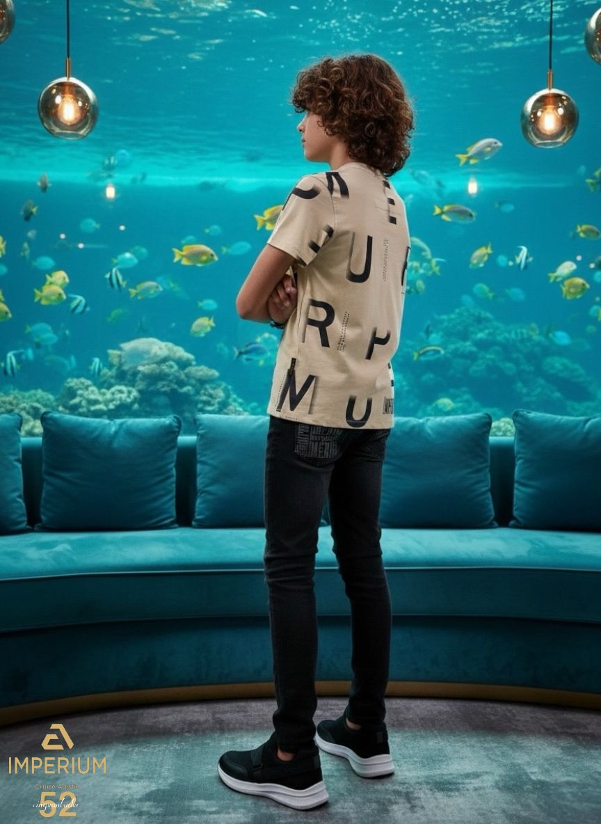 חזית החולצה: הדפסים בולטים המעניקים מראה אורבני נועז, יחד עם כיתוב מיתוג Imperium בתחתית.