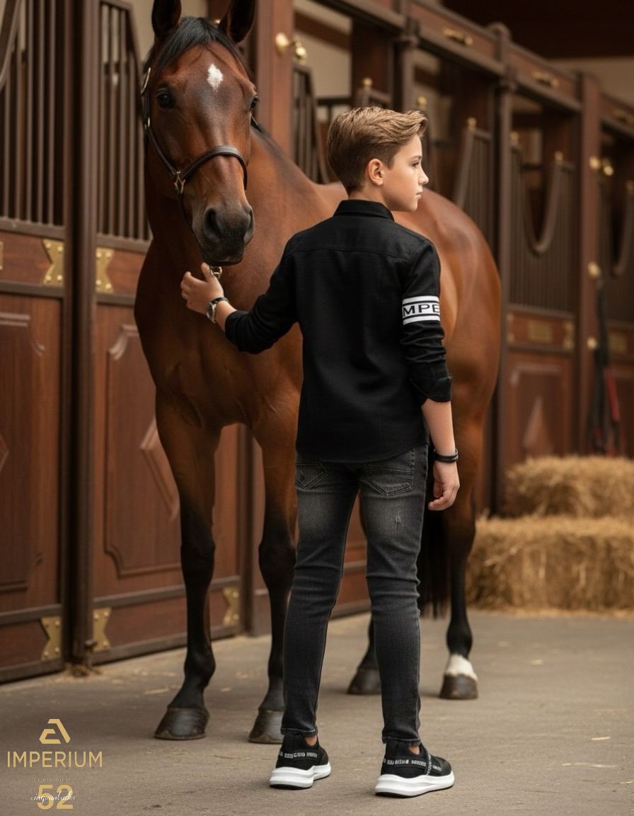 • פרטים בשרוולים: סרטי לוגו לבנים בולטים המקיפים את השרוולים עם הכיתוב הממותג "IMPERIUM".