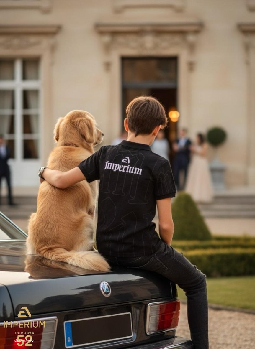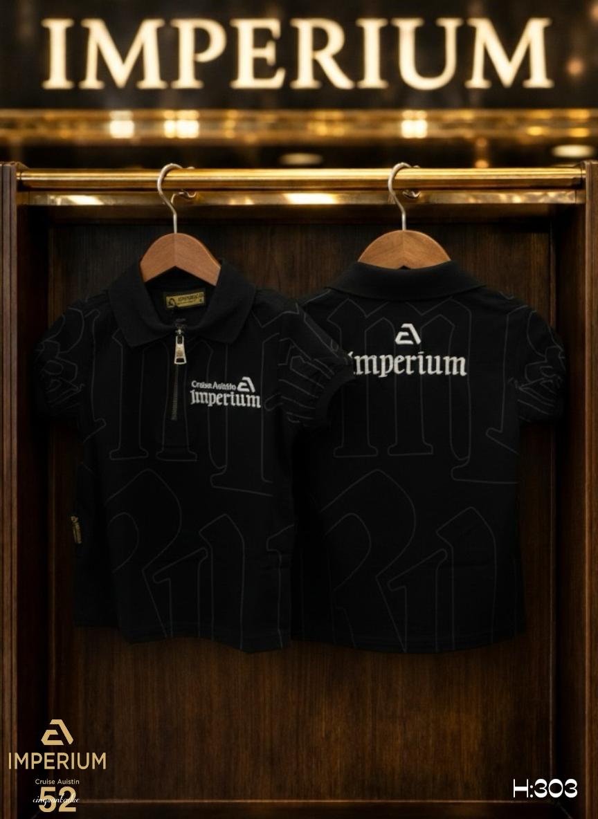 עיצוב אחורי: לוגו המותג Imperium רקום בגדול במרכז הגב בלבן בולט, המעניק מראה יוקרתי מכל זווית.