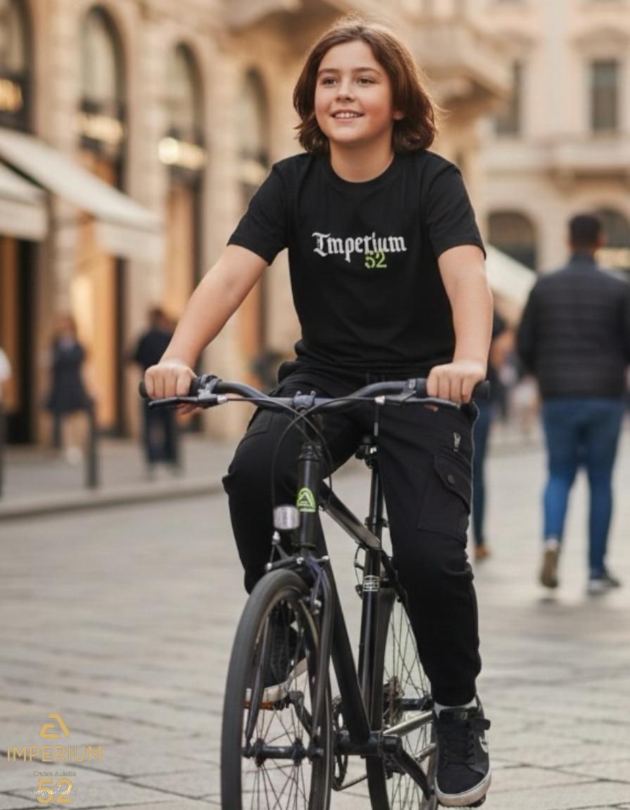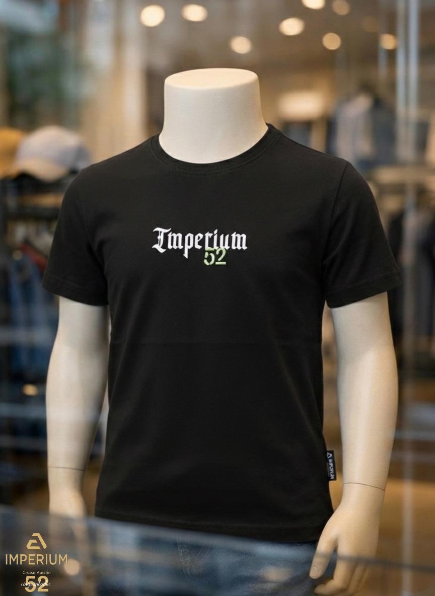 • חזית: הלוגו של "Imperium" מודפס בכתב גותי לבן מודפס, כאשר המספר "52" בירוק ניאון במרכז, מוסיף נופך מודרני.