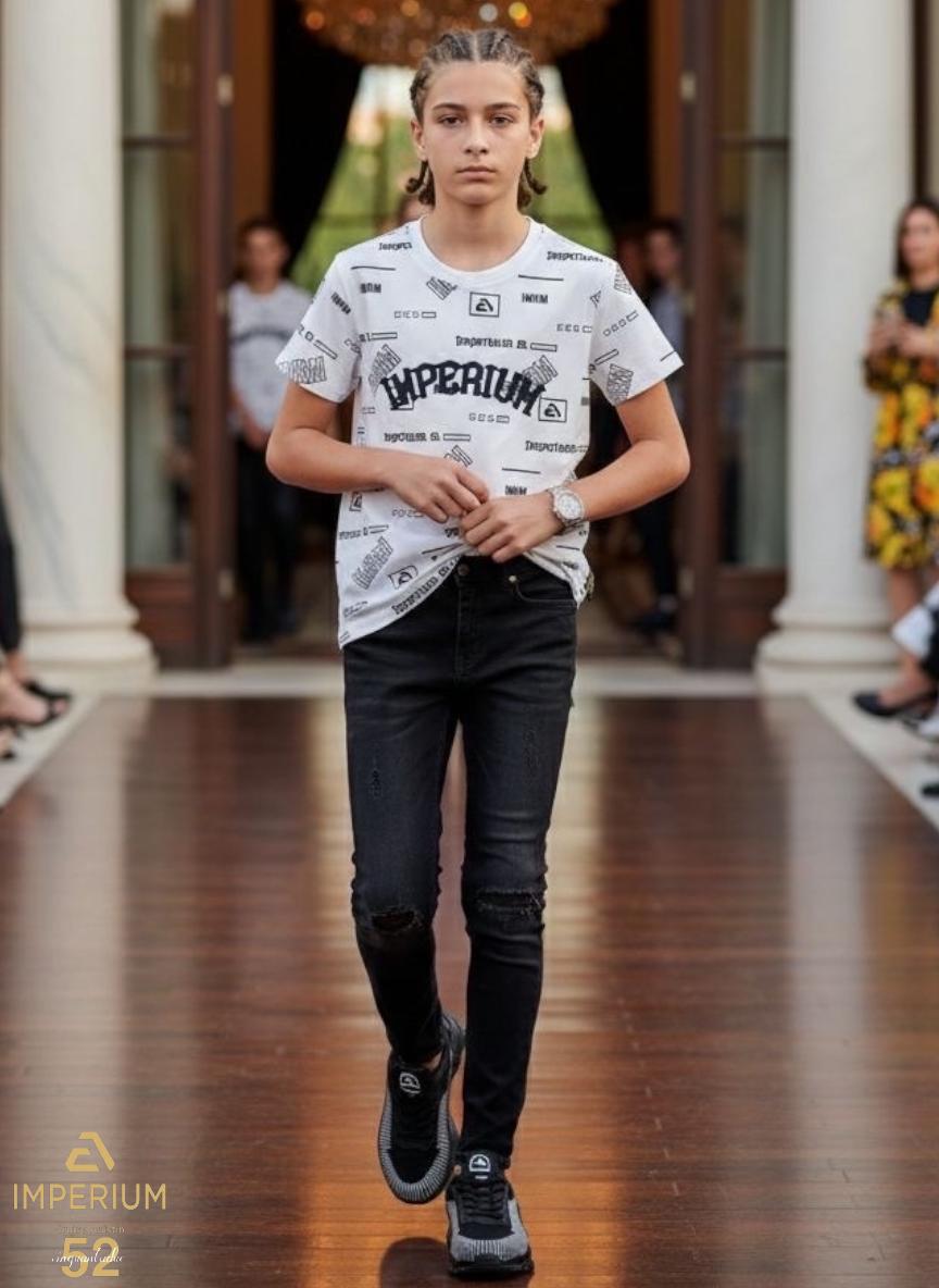 טי-שרט קיץ לבן לילדים מבית Imperium – הדפס לוגו היקפי
