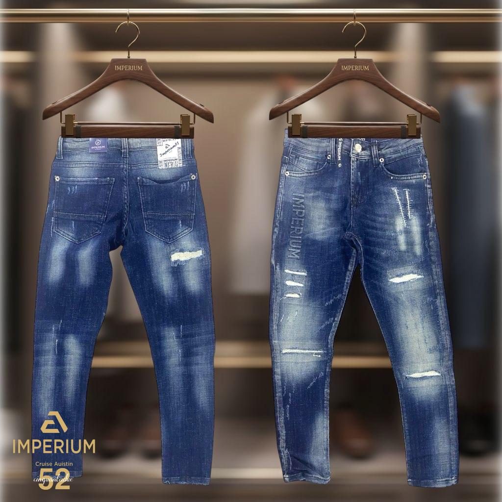 • עיצוב: הדפס לוגו IMPERIUM אנכי בגוון אפור משופשף, בשילוב שטיפת כחול עמוק עם קרעים אופנתיים.