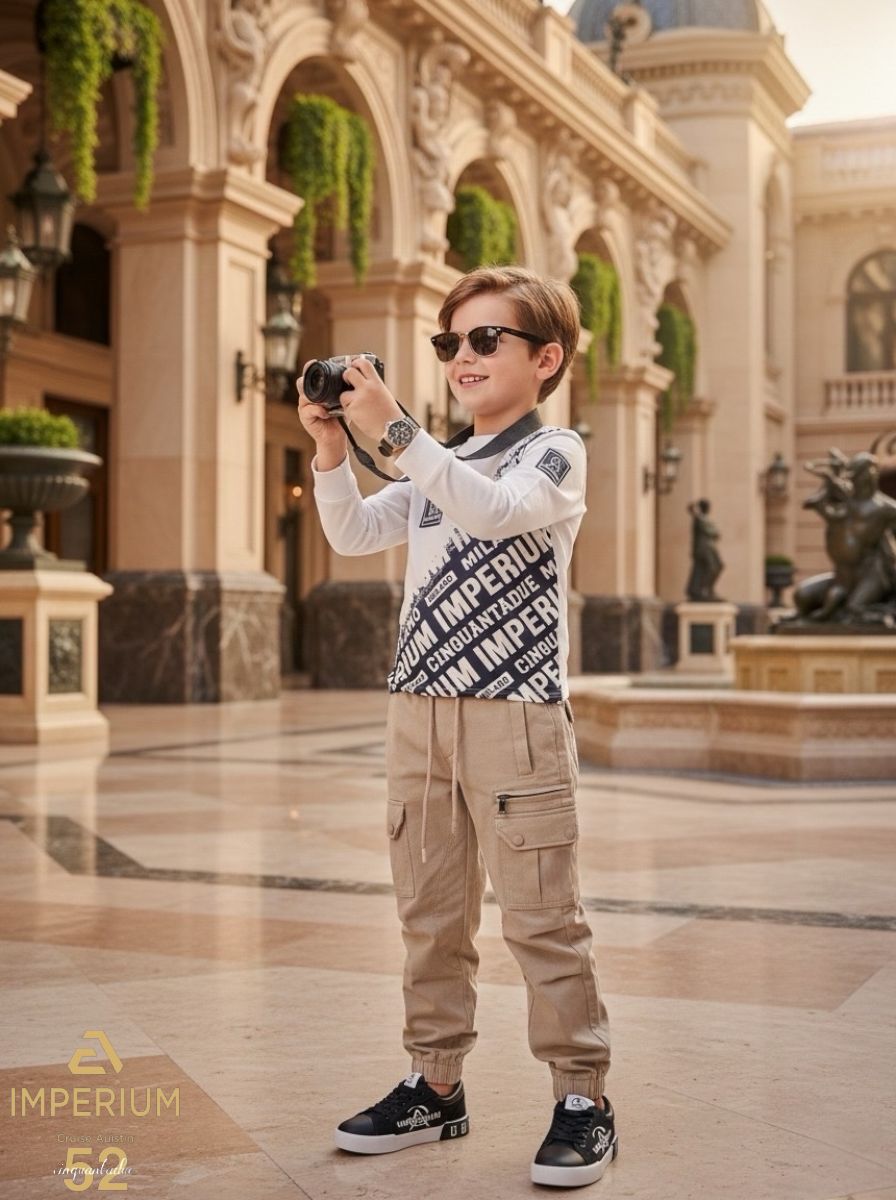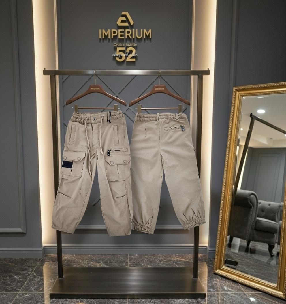מכנסי קרגו לילדים של Imperium Cinquantado, בז' כהה – כיסים כפולים ורוכסנים