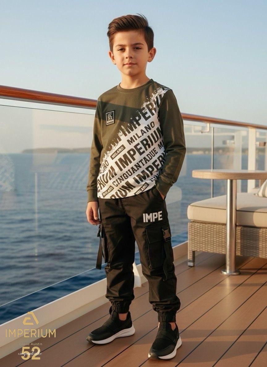 • פרטים קדמיים: כיסי קרגו גדולים עם סגירת אבזם, רוכסנים עליונים והדפס לוגו לבן "IMPE".