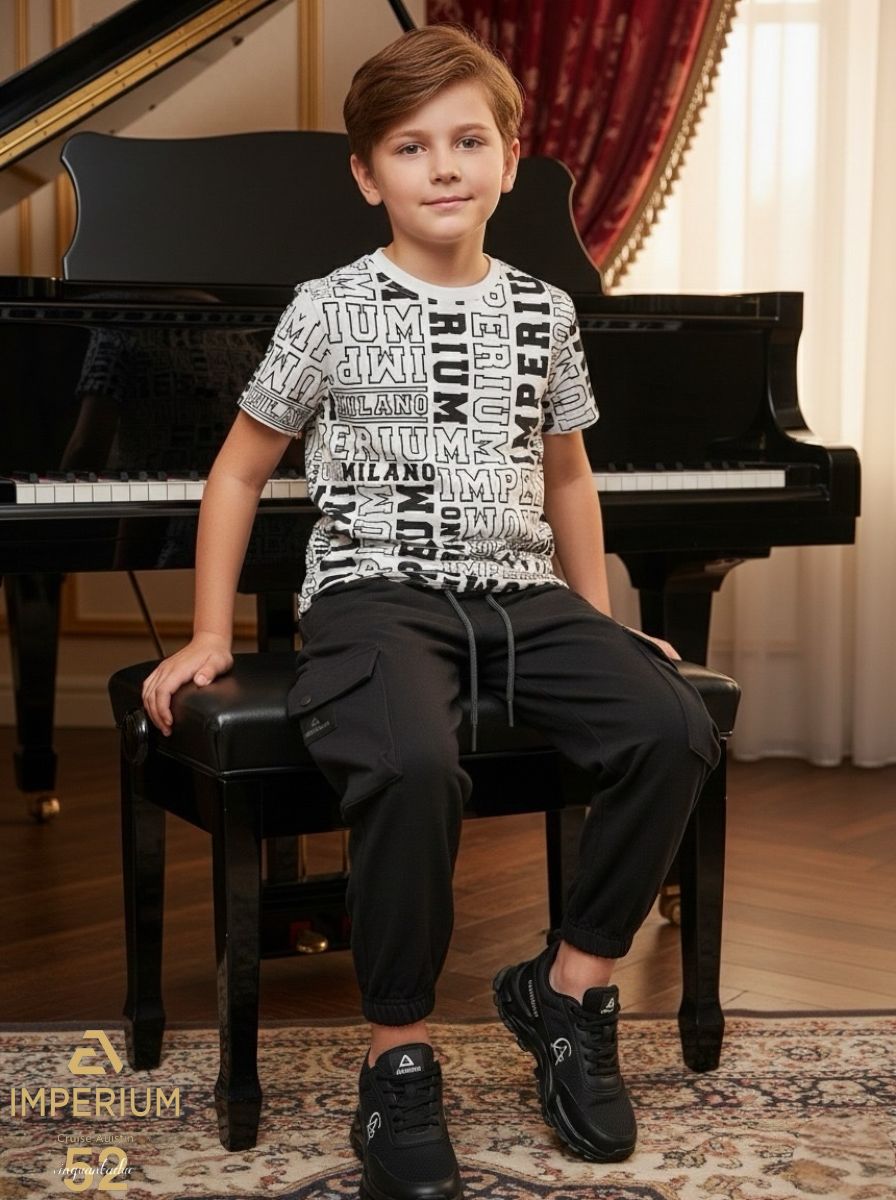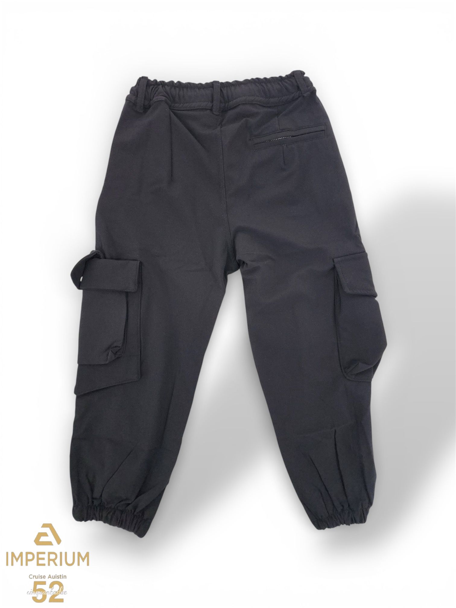 מכנסי קארגו לילדים בצבע שחור – Imperium Cinquantadue עיצוב כיסים צדדיים עם כפתורים.